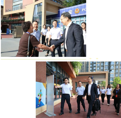 清晨校园沐浴在阳光之下,何林专家一行早早抵达。在学校党支部专职副书记张磊、副校长席向东的陪同下,专家团漫步校园,参观了充满活力与文化气息的校园环境。