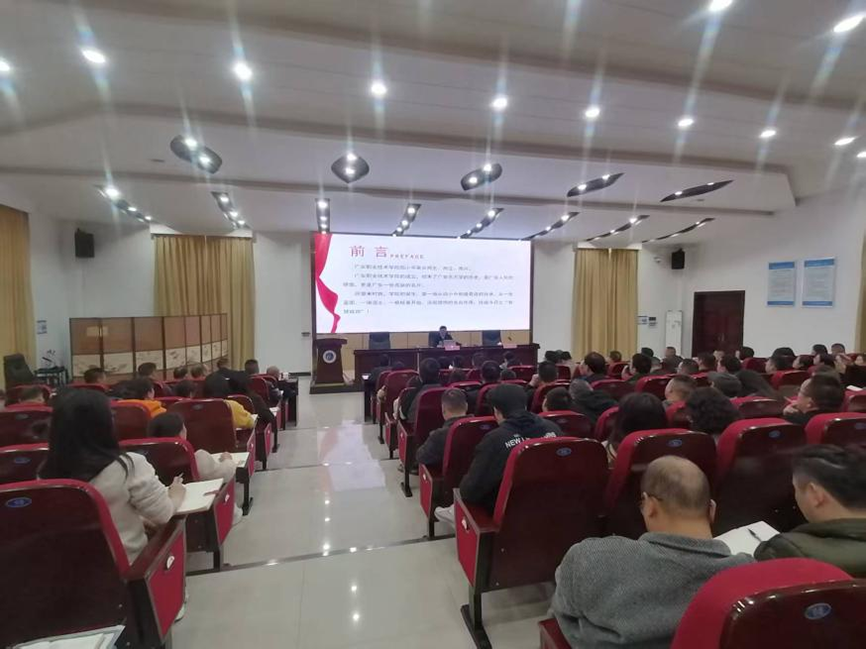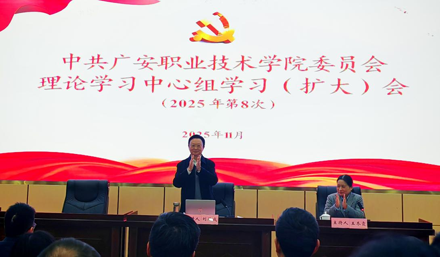 11 月 25 日下午,授课首站走进广安职业技术学院明德厅。此次授课面向学院党委理论学习中心组(扩大)会议,由学院党委书记王东霞主持,全院科级及以上领导干部参与,旨在为高校干部队伍建设与内涵发展注入思想动力。
