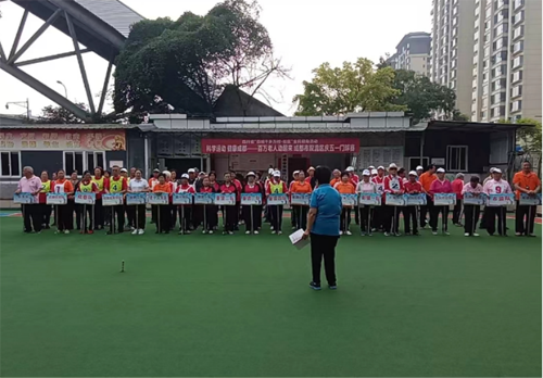 本着中共中央提出的运动展示活力、阳光体现健康的精神,全体门协会员踊跃报名参与了庆“五一”门球赛。区门协将21支参赛队编成6个小组进行单循环比赛(不打决赛),直接决出各参赛组的1-4名。