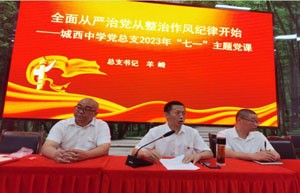 为贯彻党的二十大和省委十二届三次全会精神,深入落实上级党组织和县委教育工委决策部署,表彰先进、激励党员,凝聚思想共识、汇聚发展合力、激发干事创业激情,扎实推进作风纪律整治活动,不断推动学校新发展。2023年6月28日上午,城西中学党总支召开“建党102周年”庆祝大会,并组织全体党员开展主题党日活动。