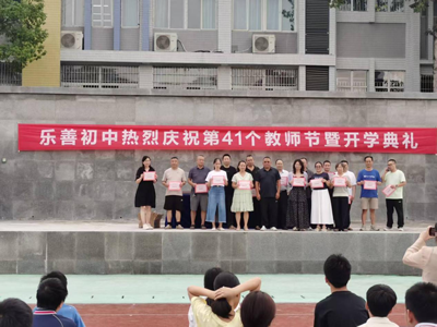2025年9月10日下午,武胜县乐善初级中学校操场上国旗飘扬、国歌嘹亮,学校在此隆重举行第 41 个教师节庆祝暨 2025 年秋季开学典礼大会,全体师生齐聚现场,共同开启新学期篇章。