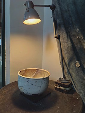 在旁人眼中,小帆和大威是琴瑟和鸣的典范。学流行音乐的小帆,坦言自己因受大威影响,这些年心平气和了许多。在大威的熏陶和鼓励下,她还专门学习了古老的锔瓷和金缮技艺。中国古语讲“惜物保福”。小帆说,在修复器物的同时自己也得到了重塑,并认为一个人懂得惜物了,才能学会更珍惜人与人之间的真正情感,这是一种正向引导,这是她这两年学习修复的心得。如今,“知不道”空间里就陈列着一些经由她手而重获新生的器物,瓷器上的锯钉和金缮的线条,宛如给残缺注入了新的生命。